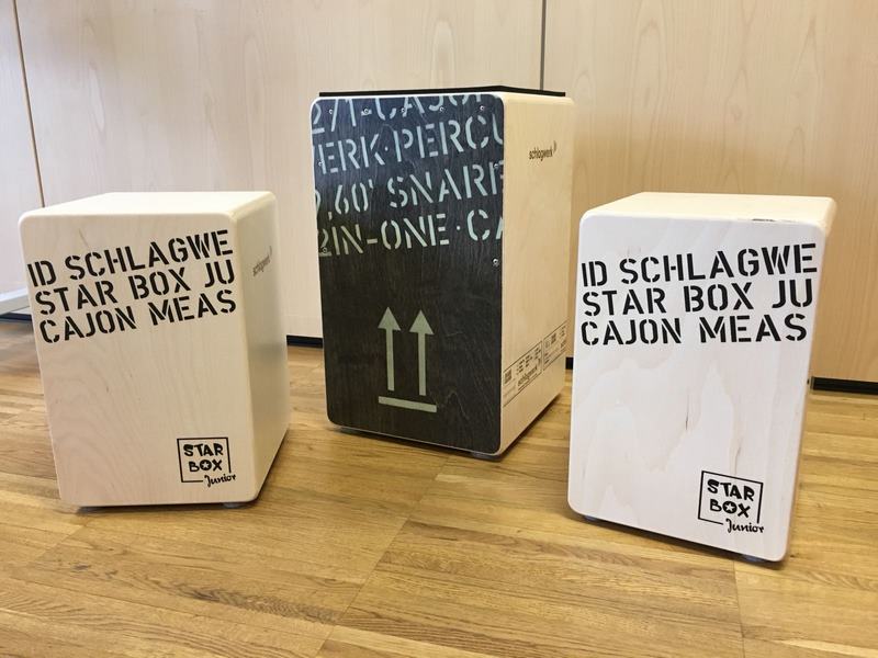 Eine große und zwei kleine Cajon’s. Nun können SchülerInnen die Lieder mit tollen Schlagzeugbeats begleiten und verstärken.